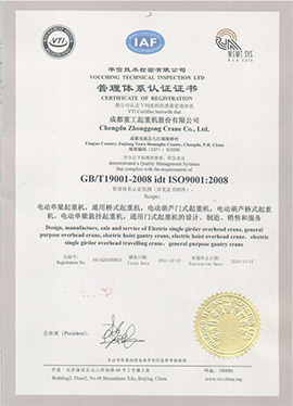 公司一貫奉行“誠(chéng)信為本,質(zhì)量為上”的宗旨,制造的產(chǎn)品及施工質(zhì)量得到了顧客的好評(píng)。銷售數(shù)量近幾年大幅上升,銷售服務(wù)機(jī)構(gòu)輻射全國(guó)二十多個(gè)省、市、自治區(qū)。本公司主要從事“重工”牌各種單雙橋式、門式、懸掛式、抓斗式、電磁式、手拉式起重機(jī),CD、MD型電動(dòng)葫蘆系列機(jī)械設(shè)備的制造銷售,承攬各種非標(biāo)車設(shè)計(jì)、制造安裝、維修、供應(yīng)全套配件。
